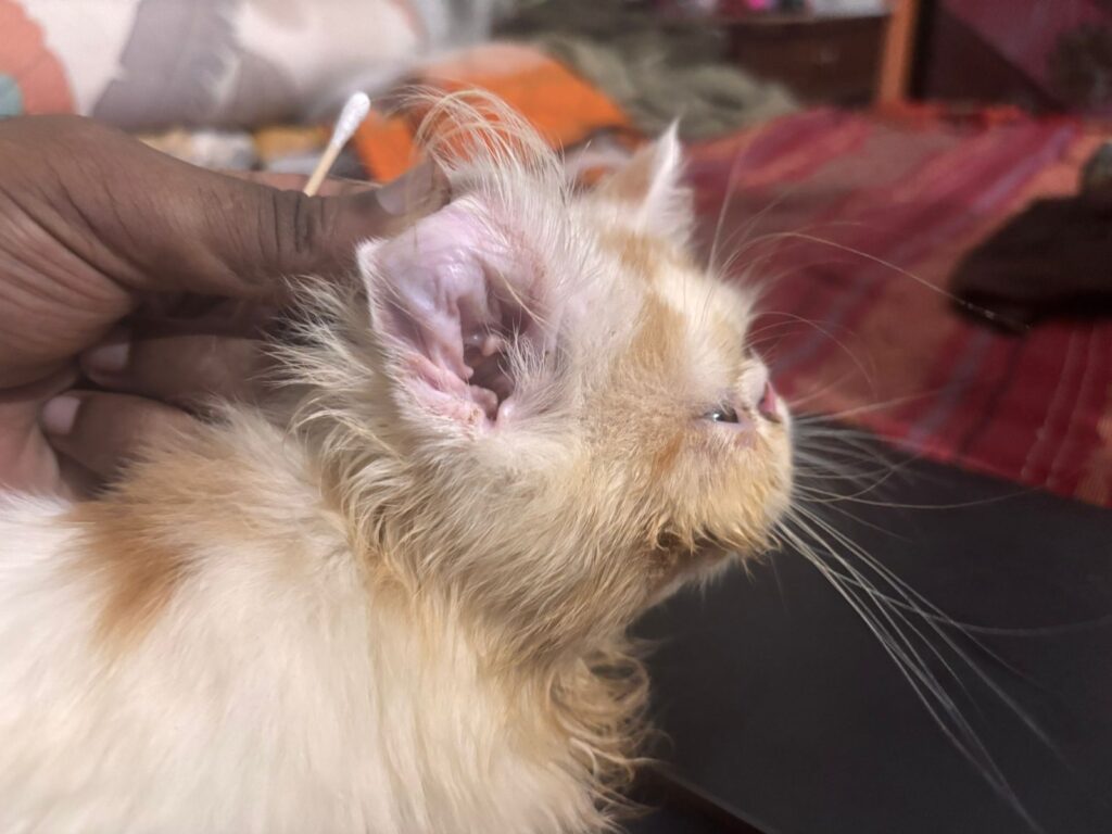 A cat-friendly ear cleaning solution (I bought one from a pet care site — [link your affiliate here])